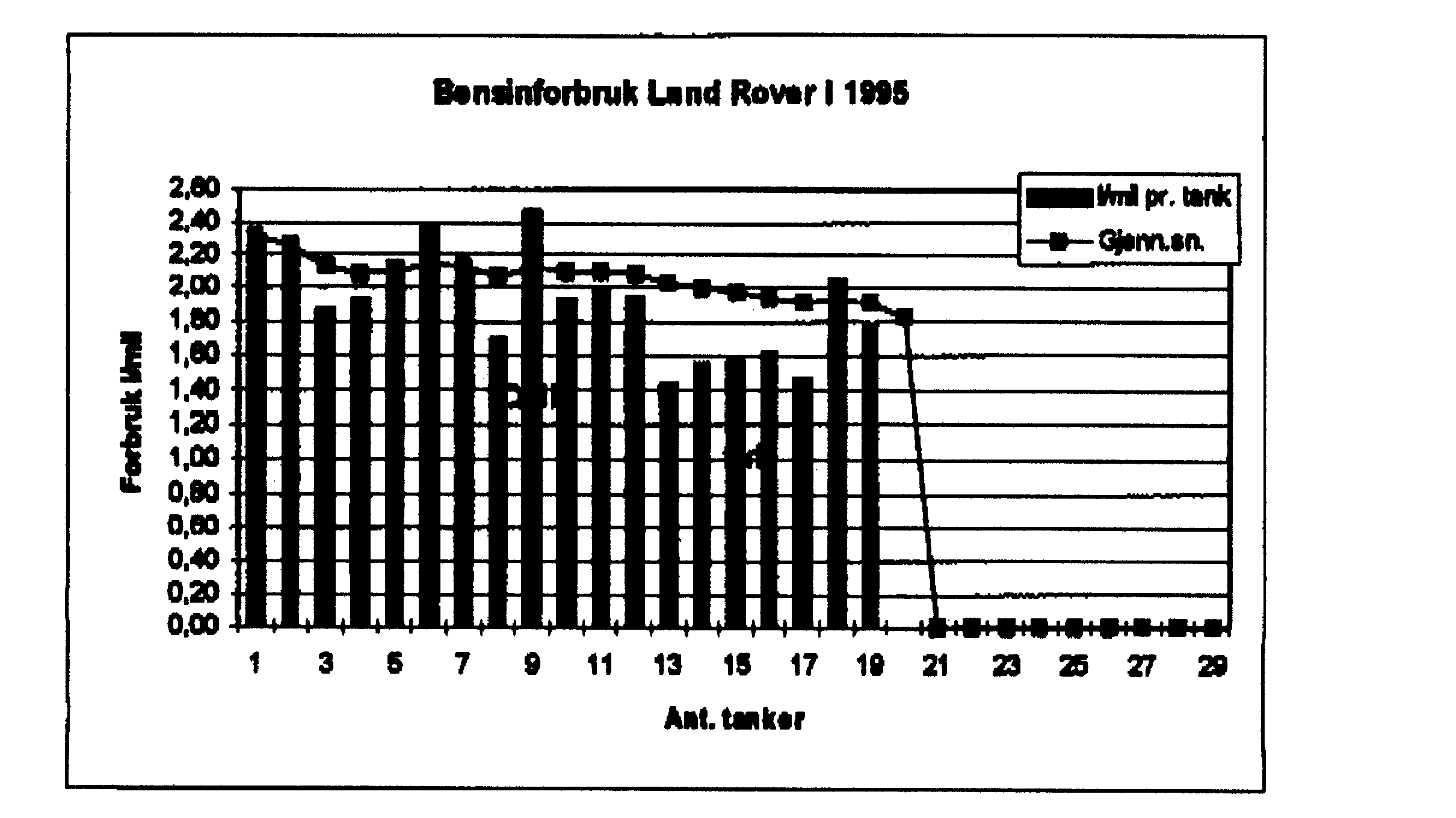 -Drivstoff-forbruket sank fra 0,96 til 0,85 på langkjøring