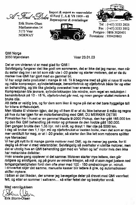 Etter å ha lest om resultatene i forbindelse om QMI i Veteranbørsen av Steinar Ludvigsen, ble min nysgjerrighet vakt. Jeg er skeptisk av natur til alt på boks som skal gjøre motoren "ny."